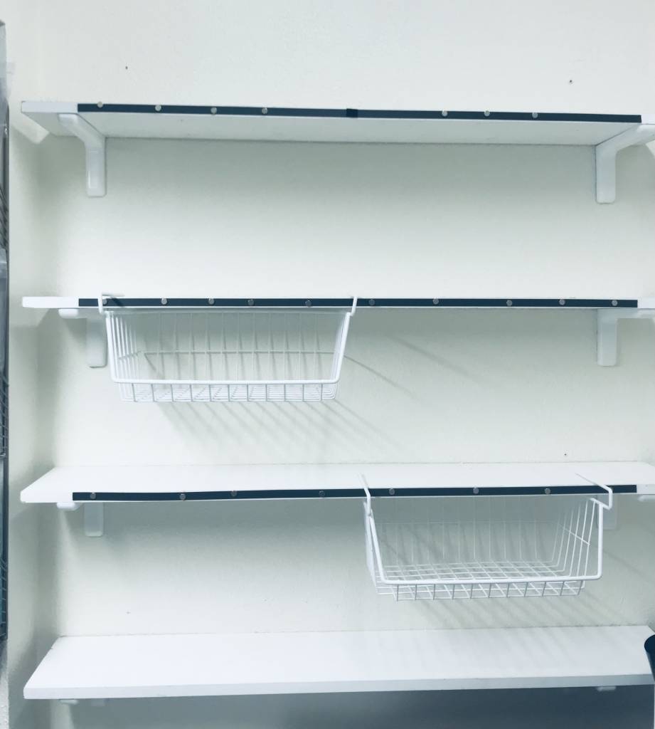 I had the answer. I found a way to hang my products right in my face, on the shelves. I bought the magnet strip for the shelf and the tiny magnets for the bandanas at amazon.