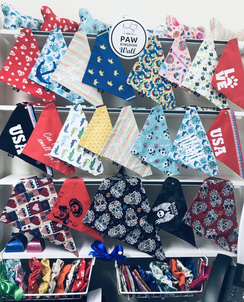 Here are different ways to position your puppy bandanas and other items. I kind of change the wall every other day, adding the more recent bandanas. I also have the apparel on the shelf, it makes it easier for me to decide what to wear to match my puppy. I truly hope you make your own PKW and share it with us using #pawkingdomwall Thank you, I can’t wait to see your wall!