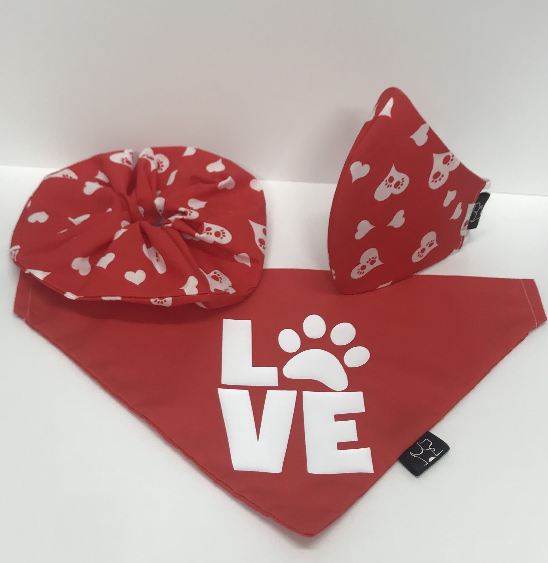 Paw Kingdom is a family business in Miami, FL. We design handmade bandanas for the King & Queen in your life. Since our bandanas are handmade design placement will vary on each bandana. This is slip-on bandana (cover placed inside opening). Set includes 1 bandana, 1 scrunchie and 1 face mask.